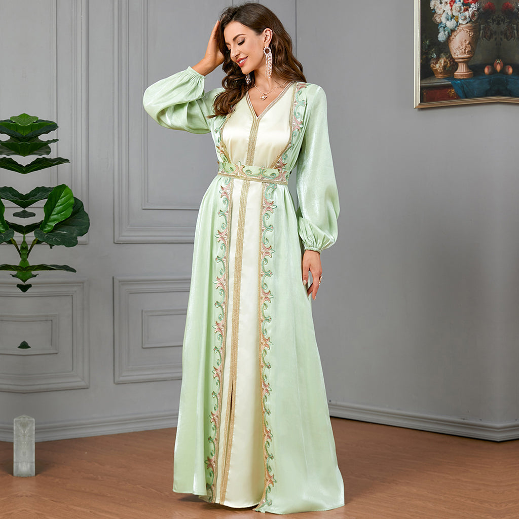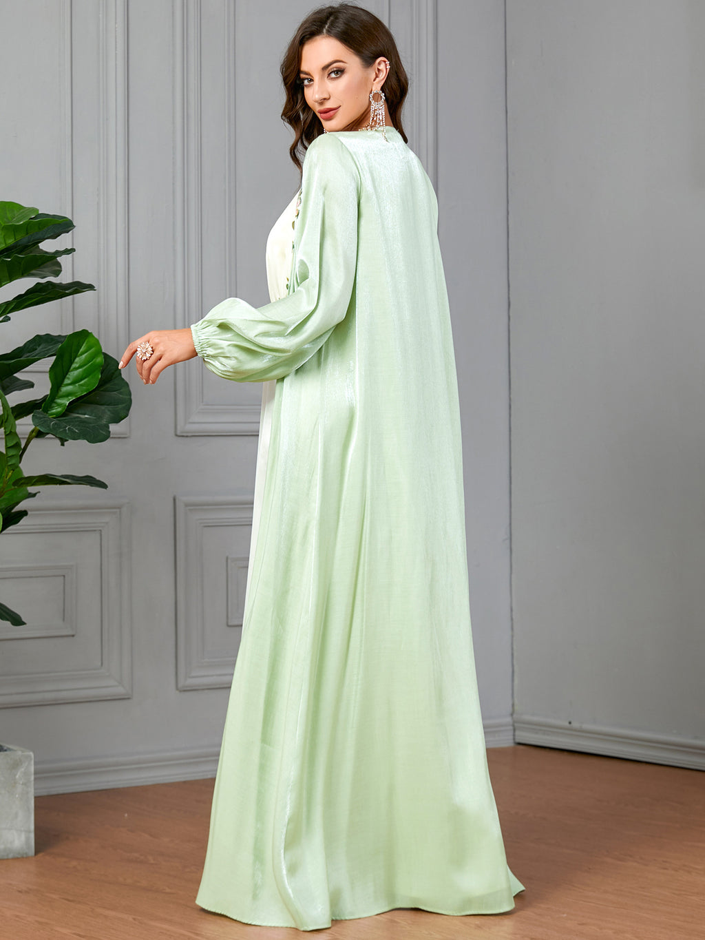 Women's Long Sleeve Mint and Cream Maxi Gown