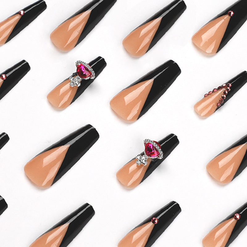 Women's Long French Nail Casket Shaped Nail Set with Rhinestones