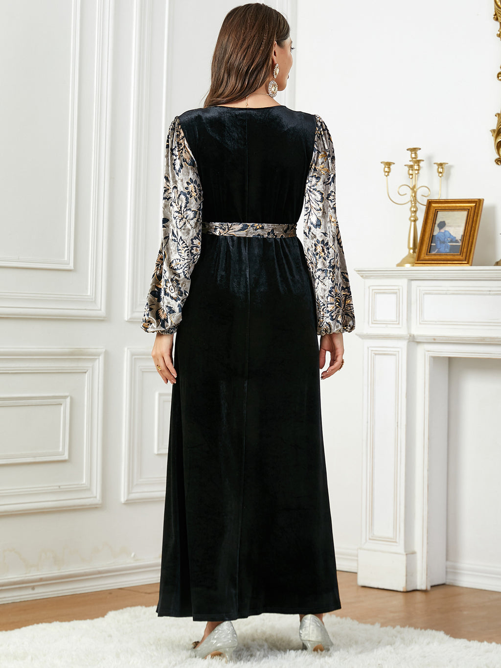 Women's Bishop Sleeve Maxi Dress with Golden Details