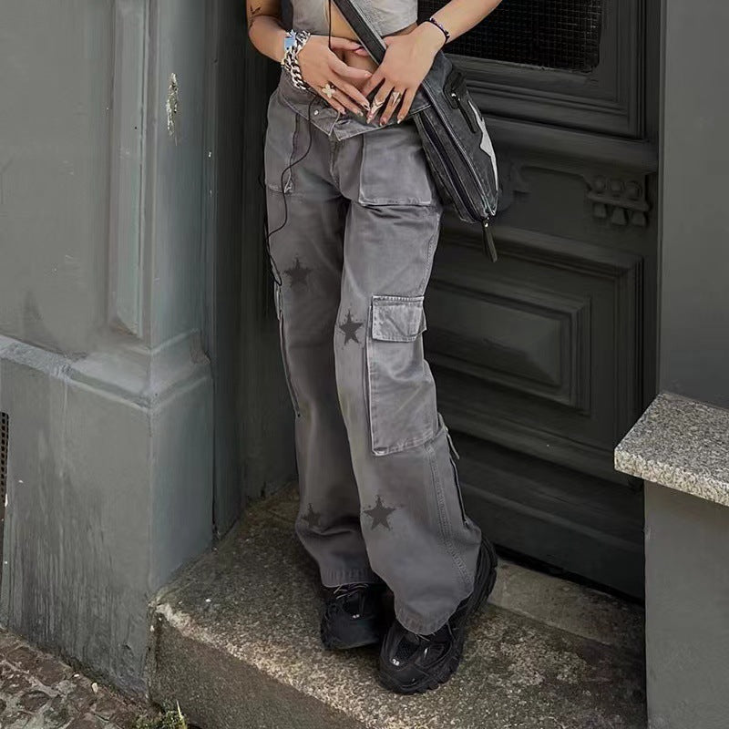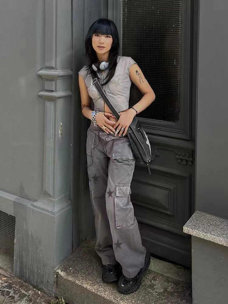 Get a stylish 90s look wearing the Women’s Loose Fitting Baggy Jeans with Star Details. They feature large cargo-style pockets on the sides of the legs.