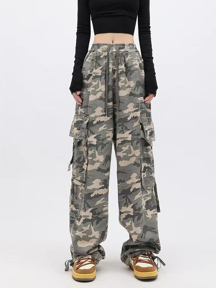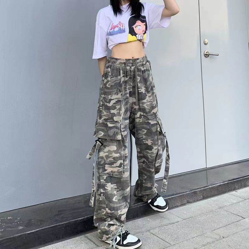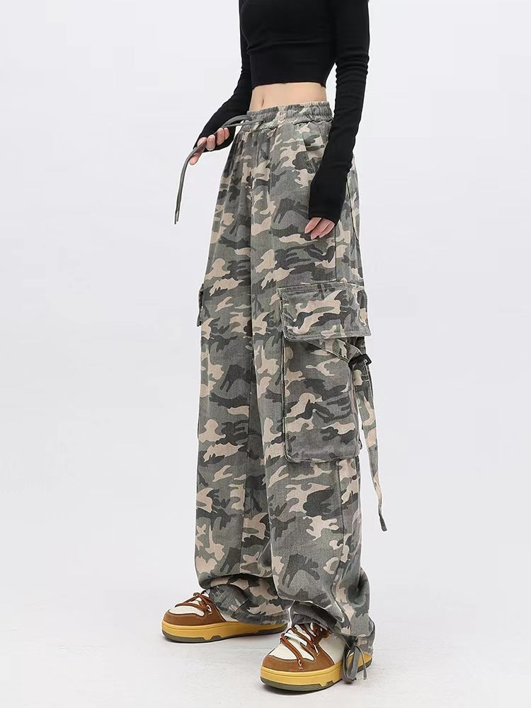 Change up your usual looks with the stylish addition of these Women’s High Waist Straight Leg Camo Pants that feature spacious cargo pockets and straps for added detail.