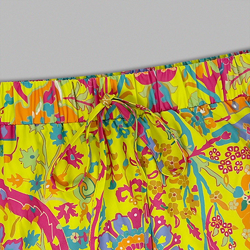 Boheems geïnspireerde maxi-rok met levendige kleurenblok bloemenprints en een comfortabele taille van trekkoord. Perfect voor stranddagen, vakanties of het toevoegen van een ontspannen maar stijlvolle sfeer aan uw zomerkast.