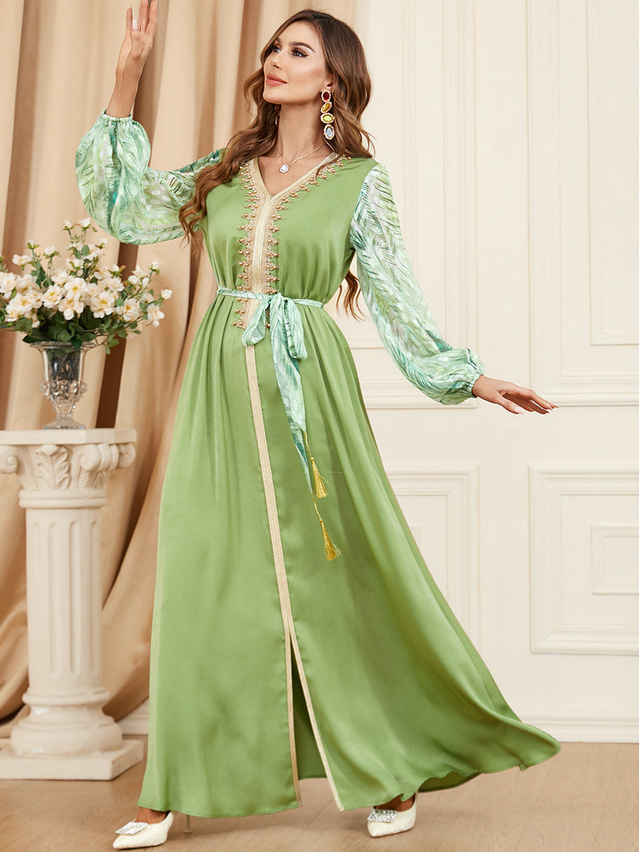 Dames met lange mouw Pale Maxi -jurk met kwastjes