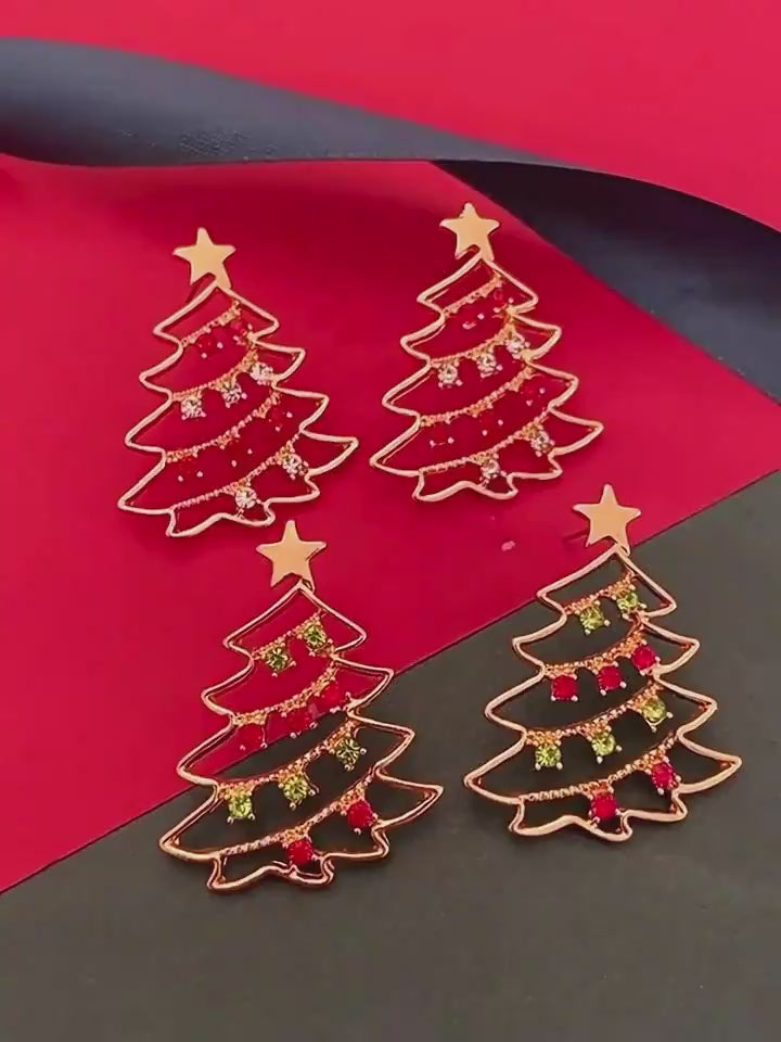 Cute Minimalist Christmas Tree Dangle Stud Back Earrings