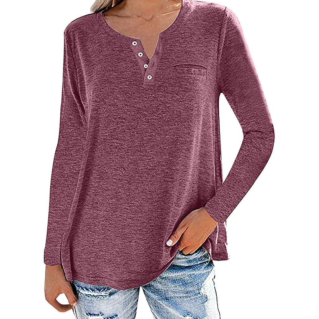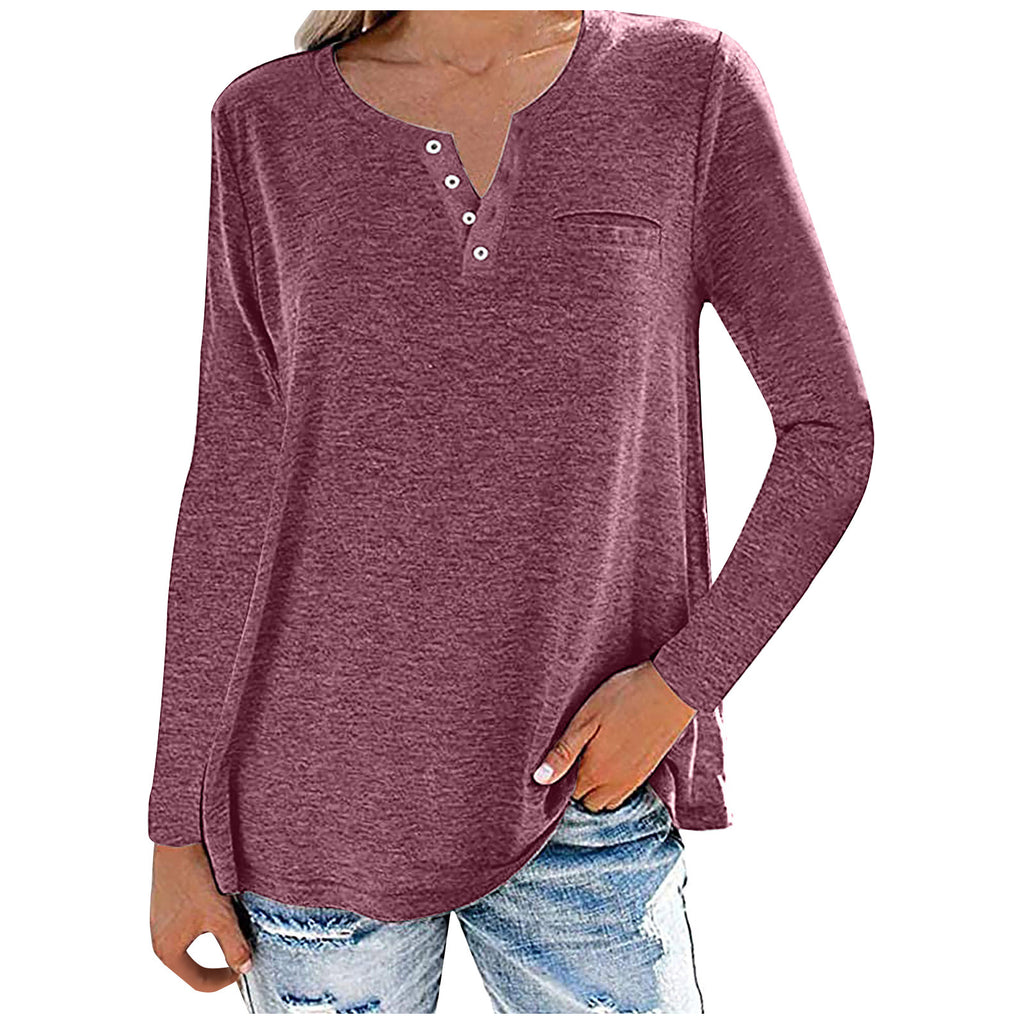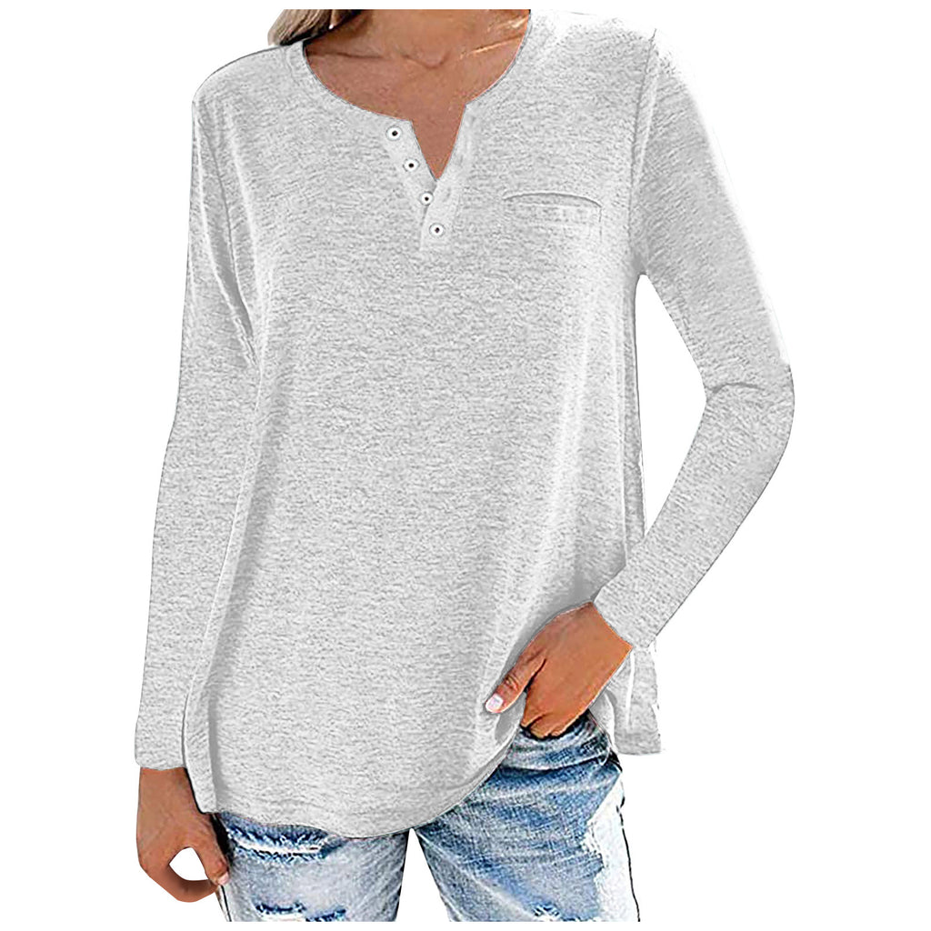 Loose Fitting Long Sleeve Buttoned Neck Top