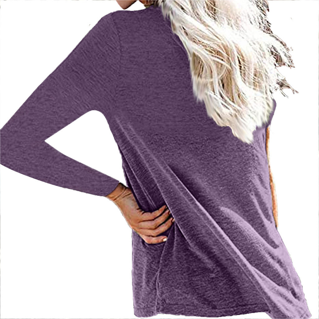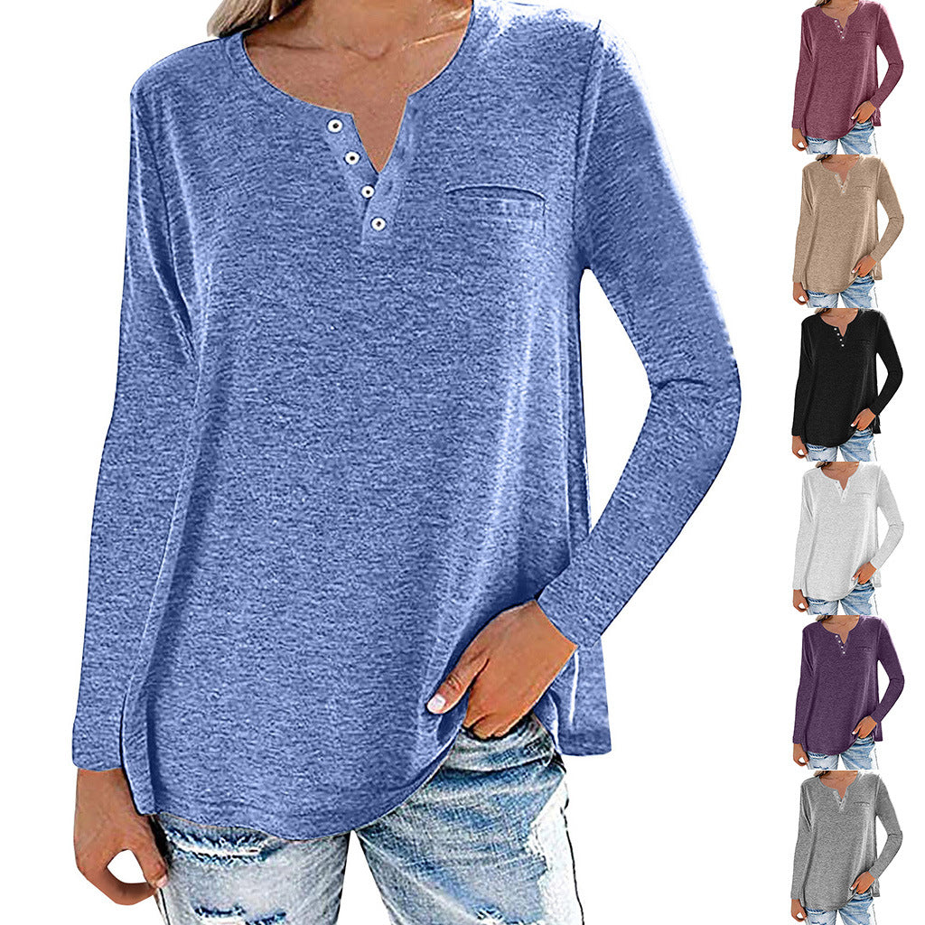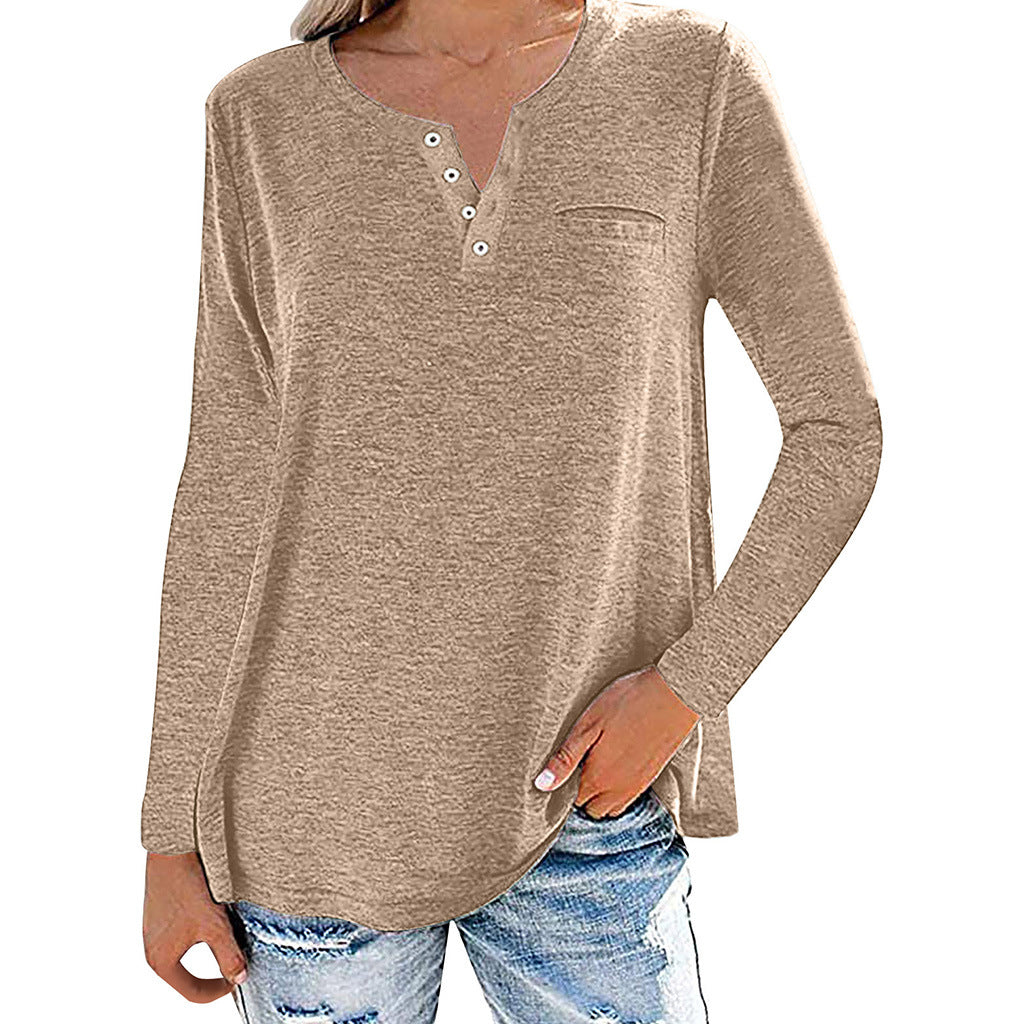 Loose Fitting Long Sleeve Buttoned Neck Top