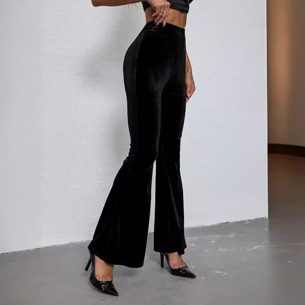 Women's Fashion Sexy Slim Solid Color High-Waist Velvet Flared Pants