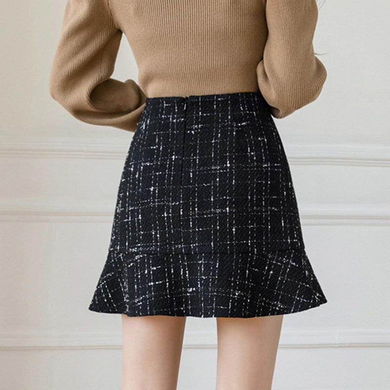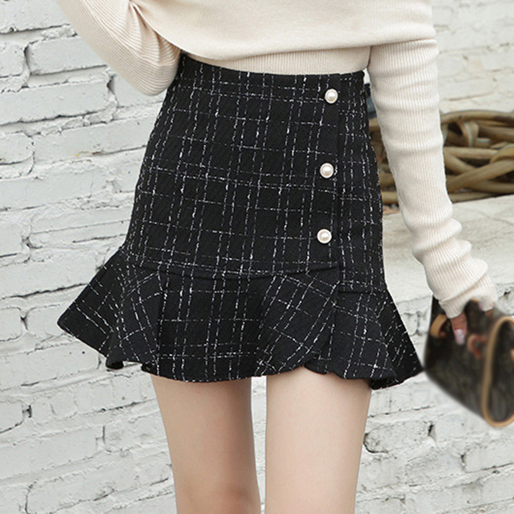 Women's High Waist Plaid Buttoned Pencil Skirt