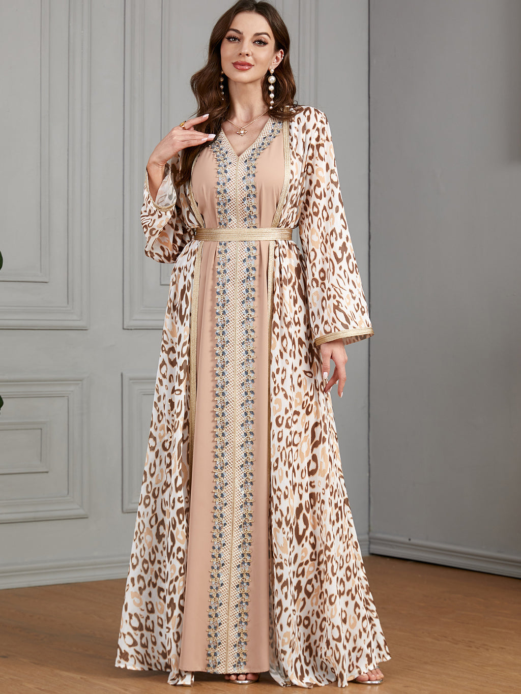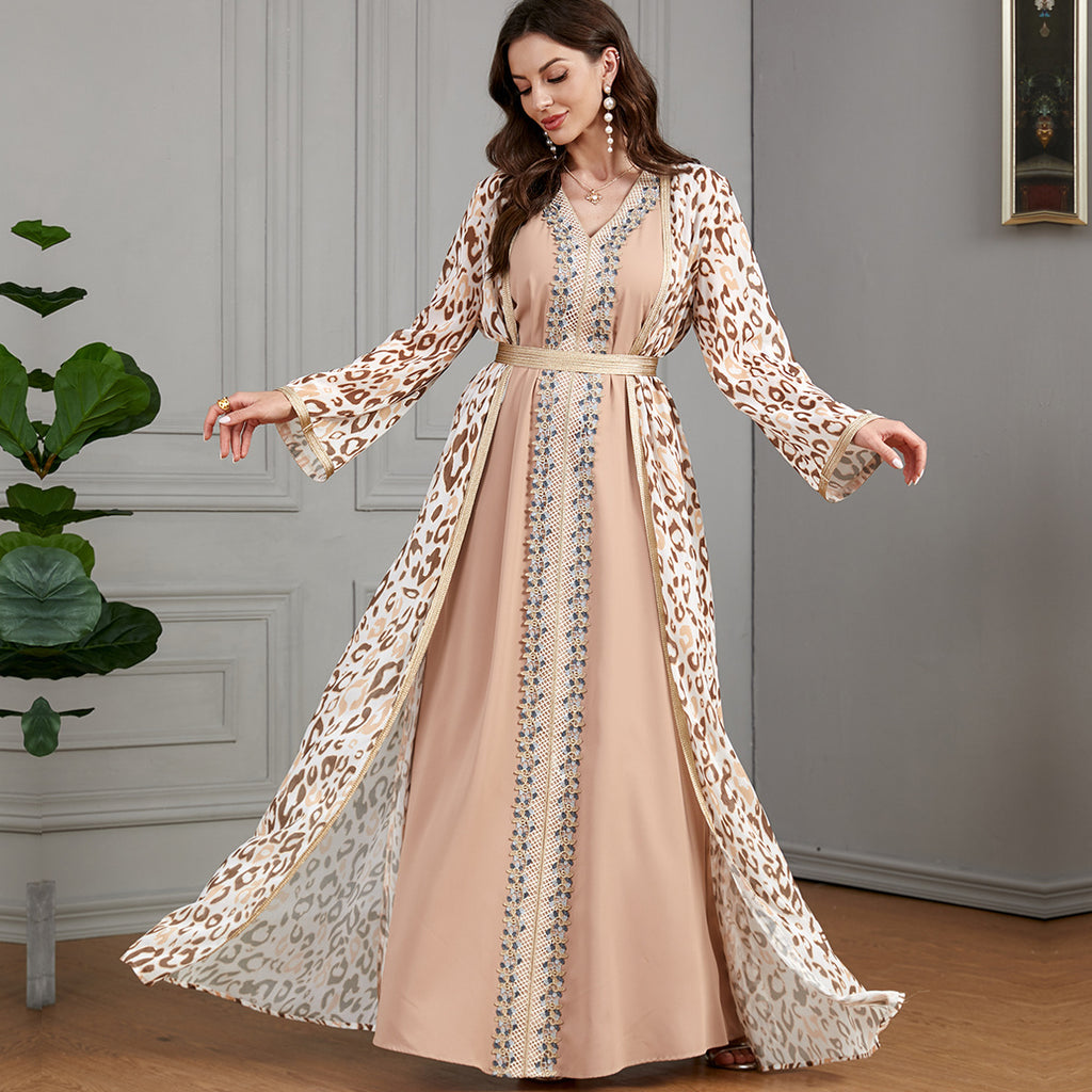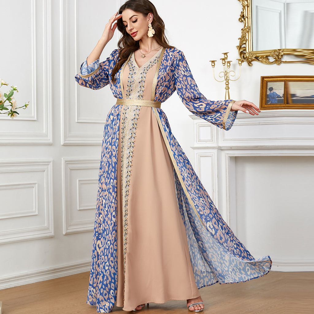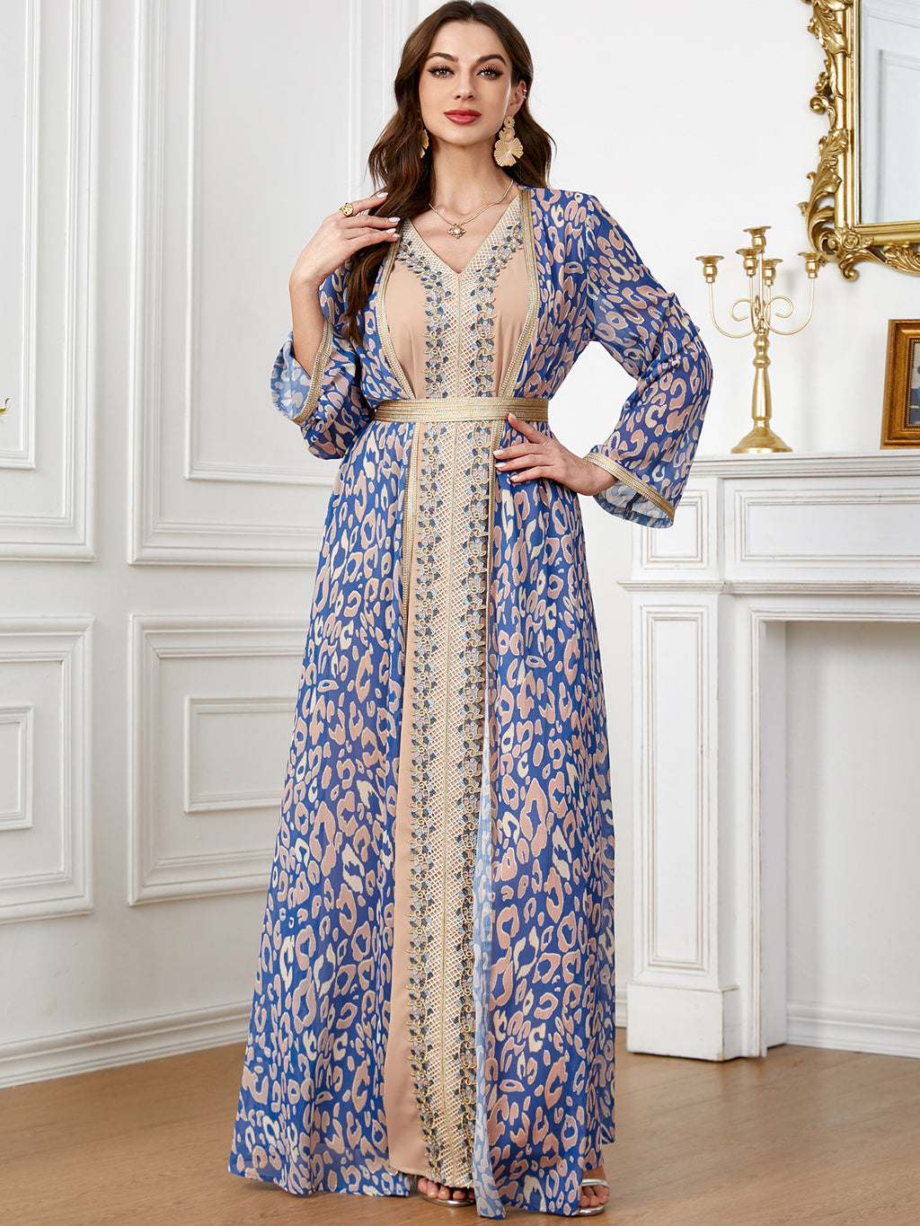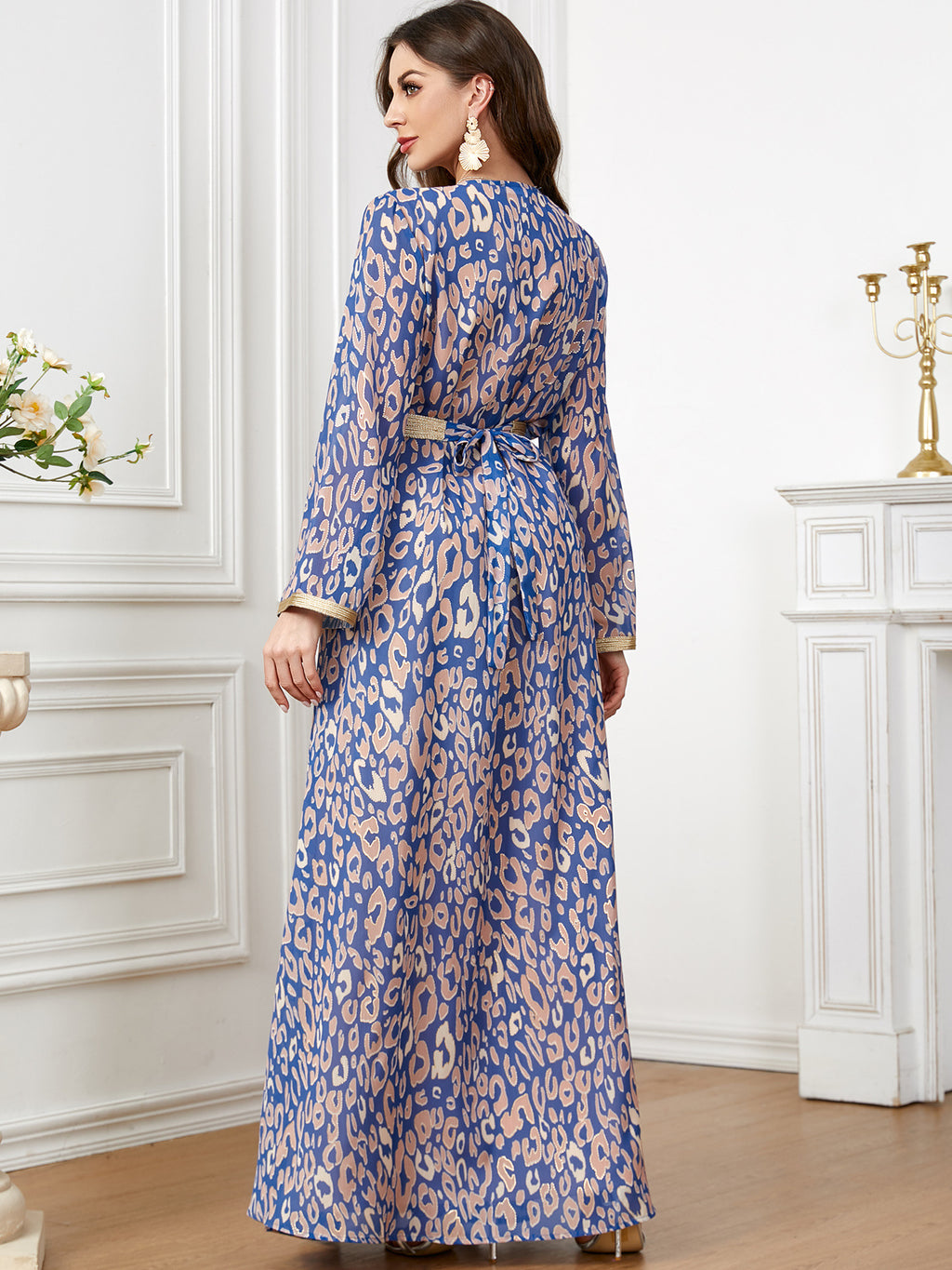 Get a delicate, dainty look with the Women's Lavender and Pink Maxi Gown featuring a robe that cinches around the waist, covered in floral print.