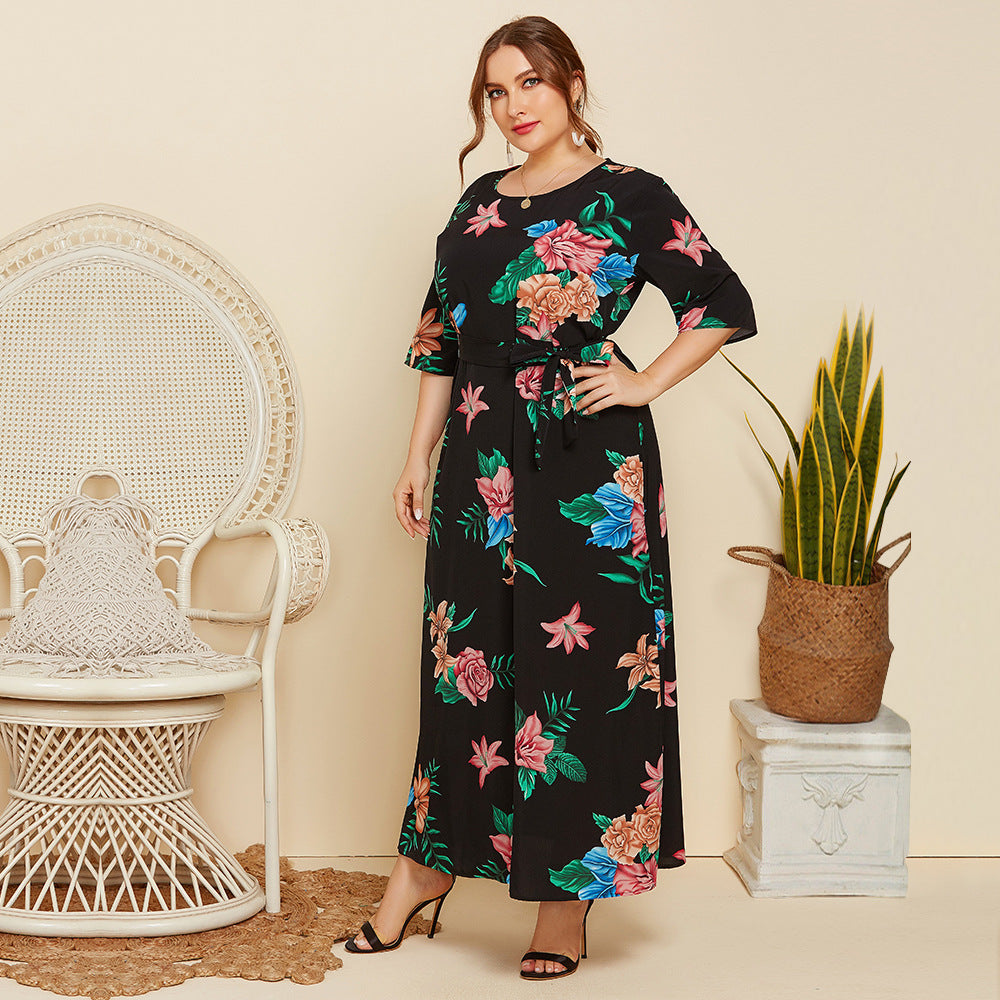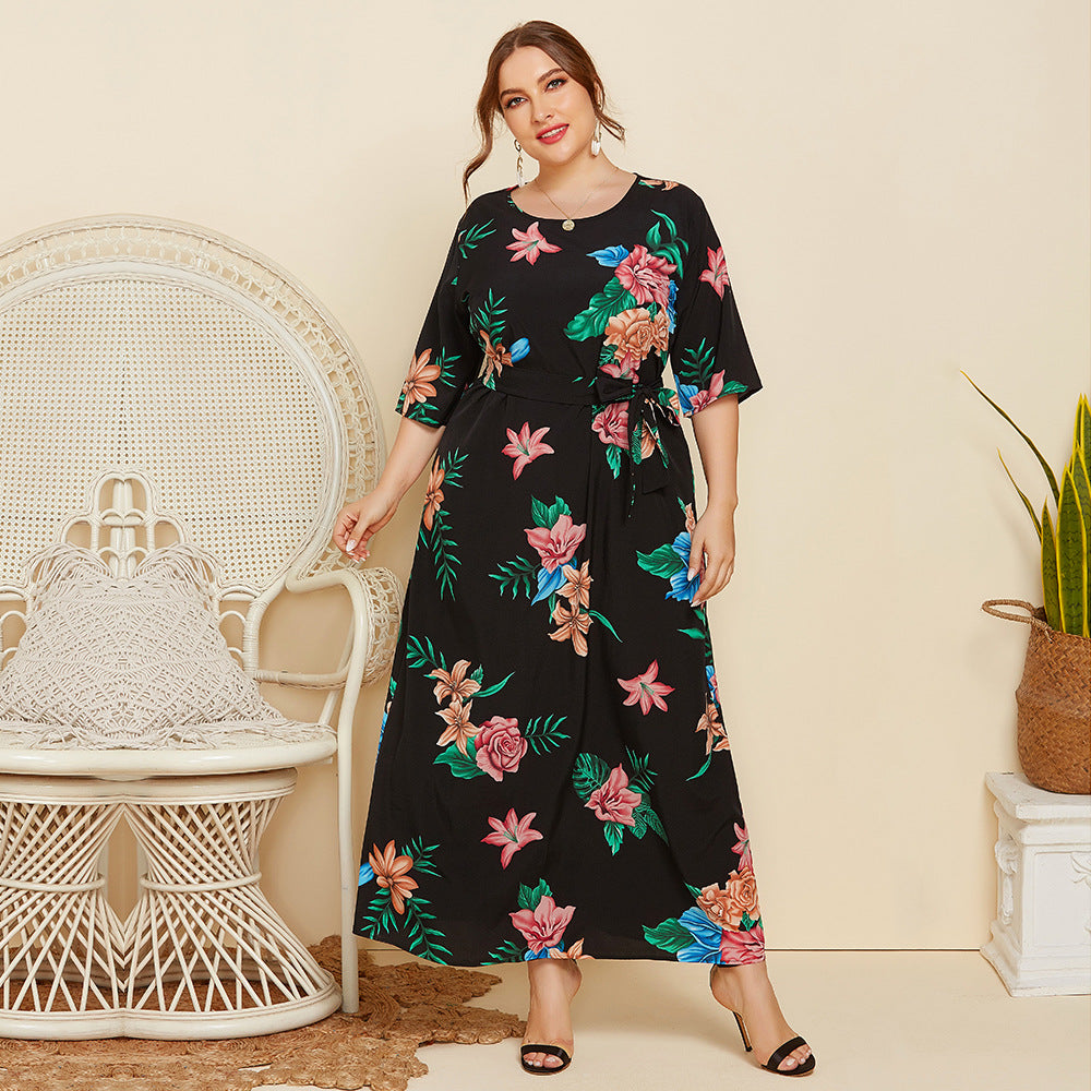Women's Loose Fitting Floral Maxi Dress with Three Quarter Length Sleeves