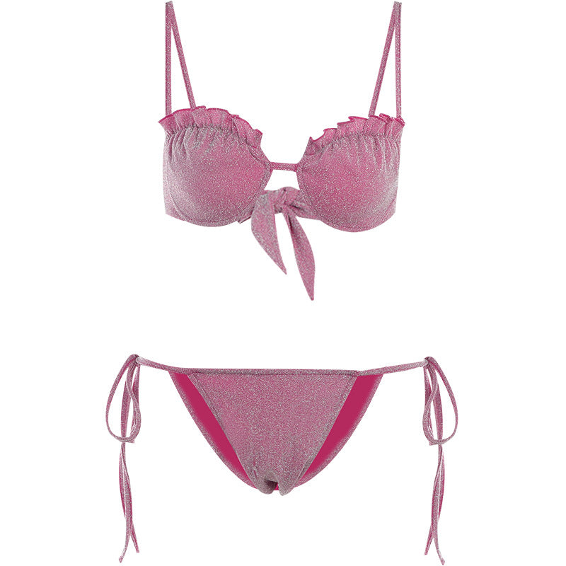 Feel flirty and free in this Women's Two Piece Swimsuit with Sweetheart Neckline. This bikini features string-tie bottoms that sit high on the waist for a revealing look.