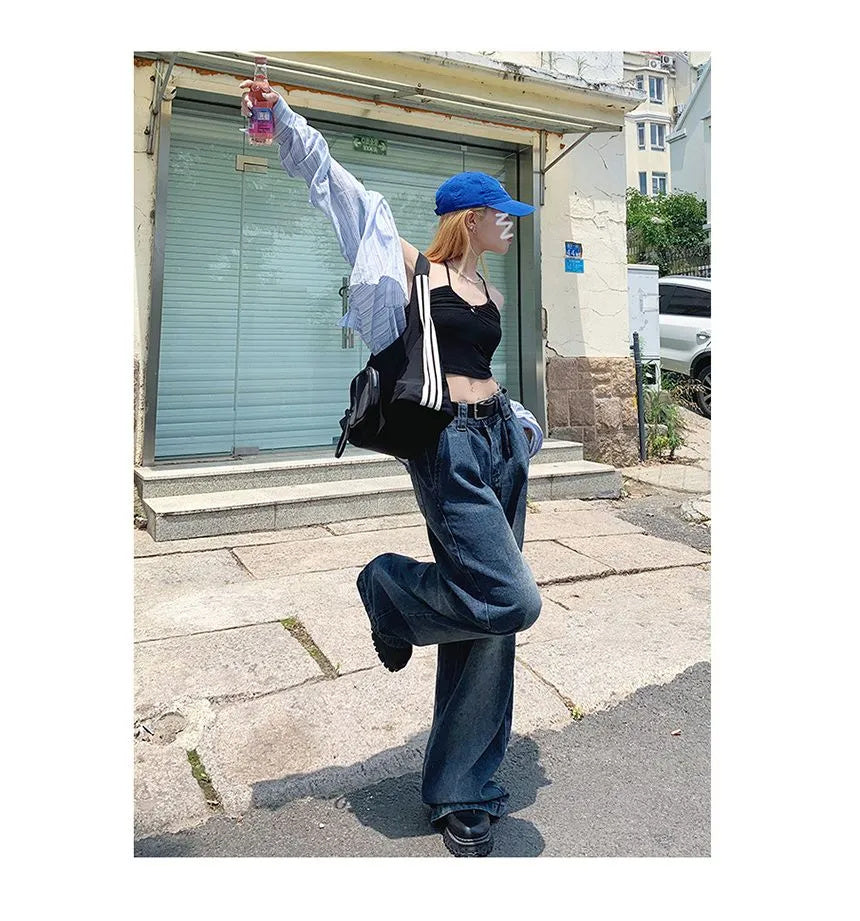中輪洗淨的寬邊牛仔褲,放鬆身材