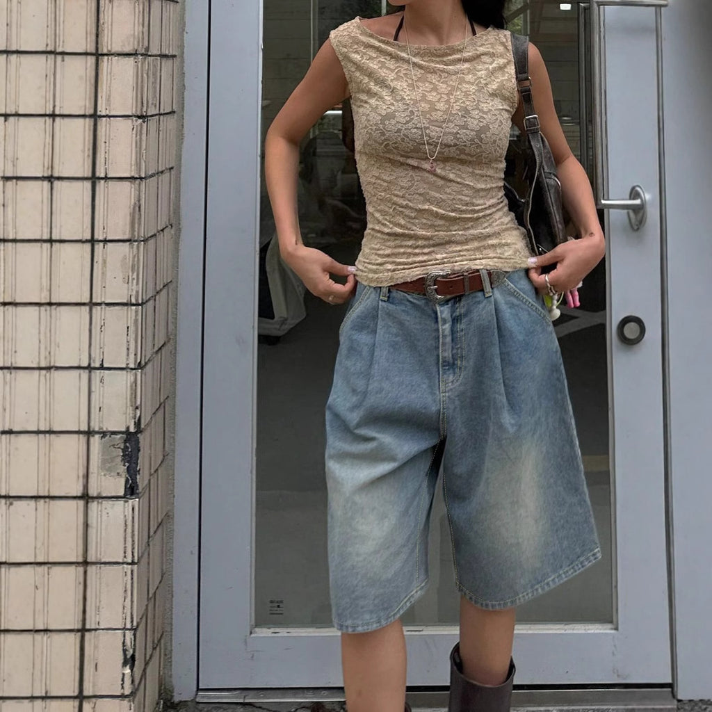 復古的寬腿牛仔短褲,寬鬆的魅力