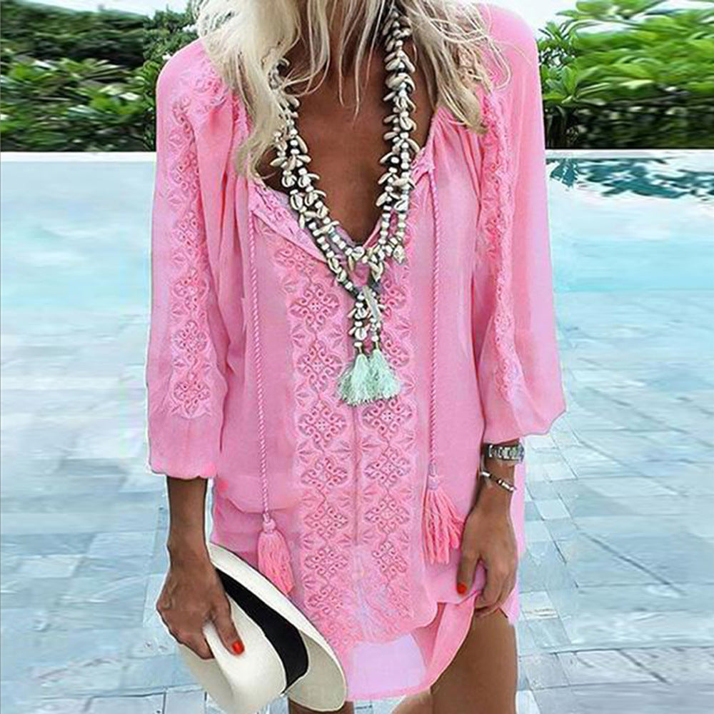 女子長袖半透明蕾絲連衣裙是任何鄉村別緻的衣櫃的完美補充。從棕色,粉紅色,黑色或藍色品種中選擇以適合您的口味。
