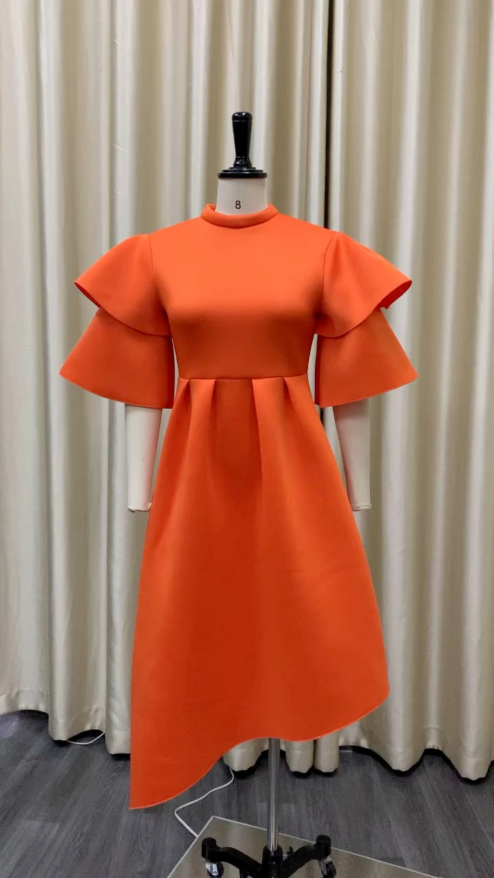 婦女的戲劇性分層袖子連衣裙,不對稱下擺