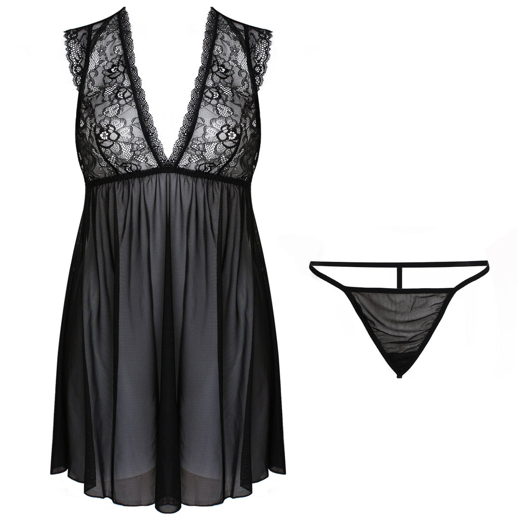 別緻且誘人的同時,V型脖子蕾絲頂部的babydoll是一款簡單的babydoll Nightie,帶有蕾絲上衣和匹配的丁字褲。