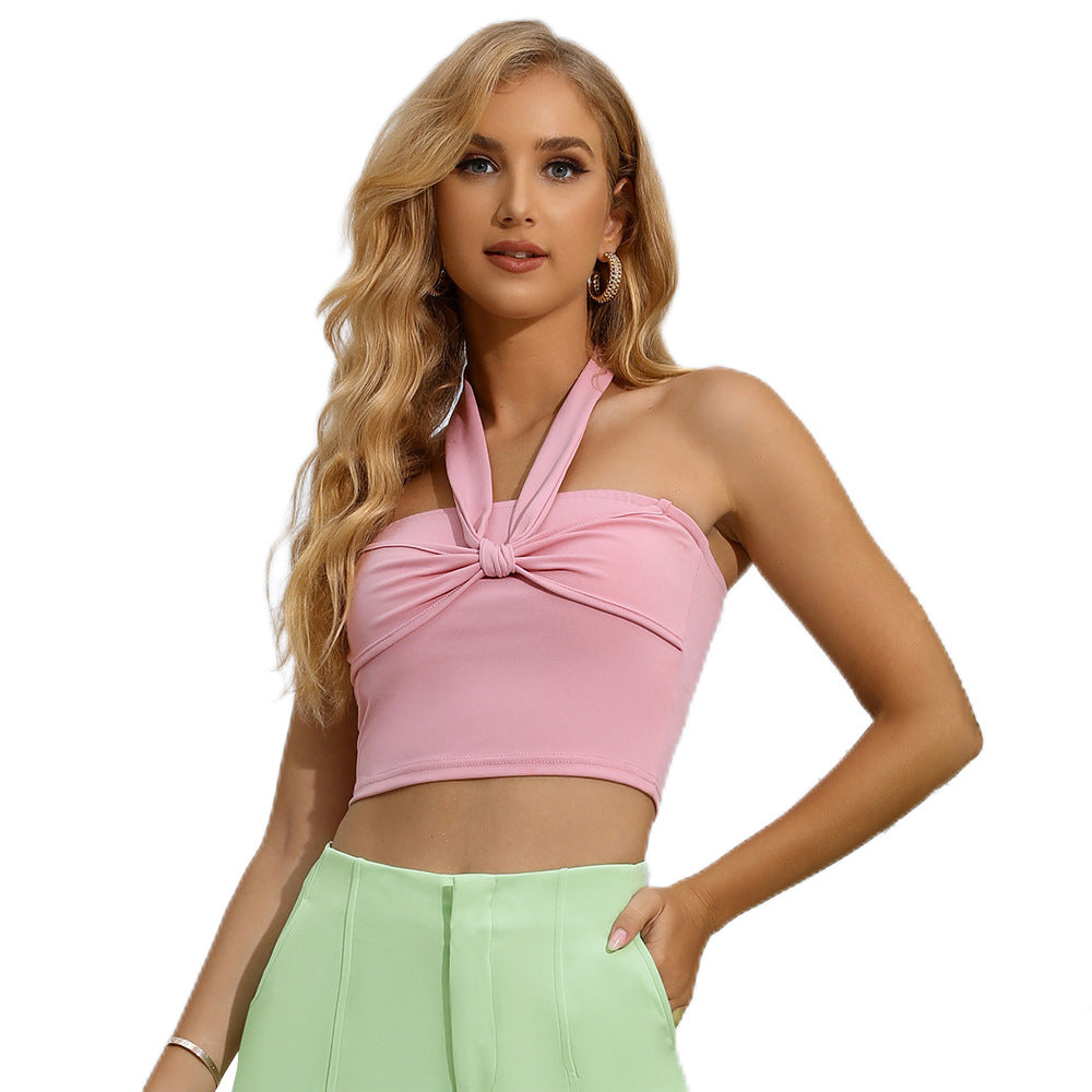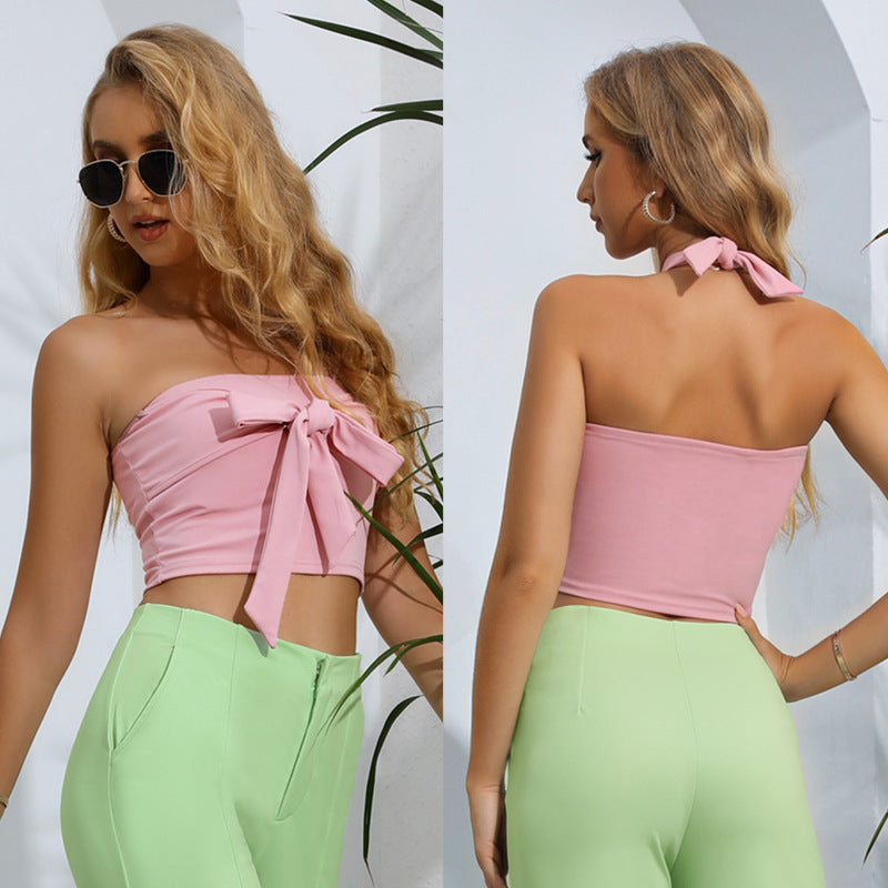Bring some playful charm to your daytime looks with the Women's Baby Pink Top and Lime Green Pants Set. The crop top features a halter neck that complements the high waist pants.